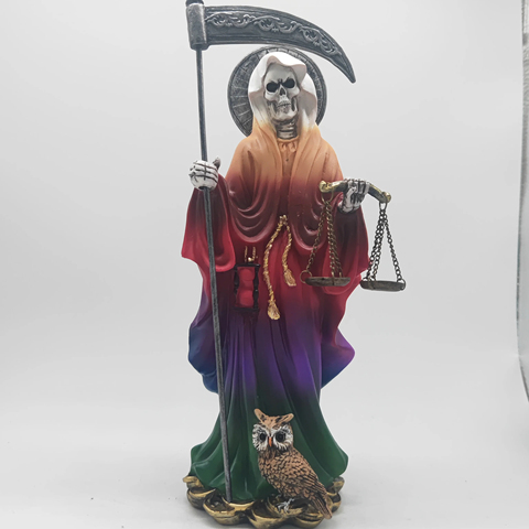 Kutsal ölüm Santa Muerte ölü gökkuşağı tunik günü içinde Scythe tutan